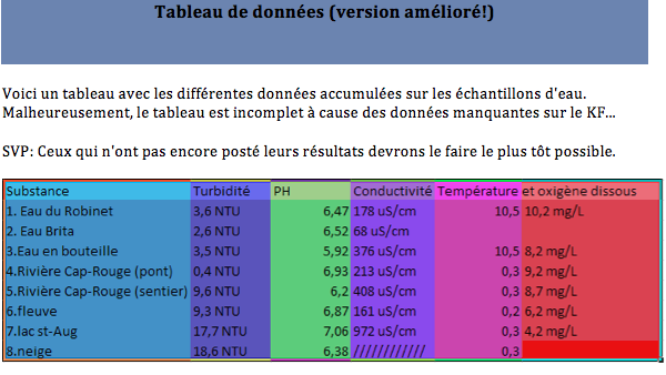 It's in the The laboratory technicians' perspective on water "view" that the students published their results from the laboratory work. It's where they also discussed about the first observations that will serve as basis of their analysis.