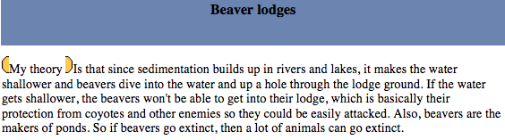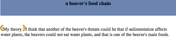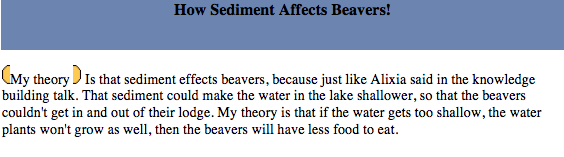 Pour mieux comprendre la problématique dans toute sa complexité, les élèves ont eu recours à d'autres phénomènes comme la photosynthèse. Selon eux, la sédimentation des étendues d'eau réduit l'apport en soleil de la flore aquatique qui sert d'alimentation de base à des espèces comme le castor.