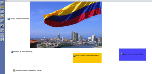 Cette année, des écoles du Québec et de la Colombie ont échangé leurs idées à propos des énergies renouvelables, à l'aide des échanges écrits sur le KF et lors des présentations par visioconférence. À travers leurs contributions, ils ont notamment abordé les thèmes du recyclage, des ressources naturelles et du jour de la terre. Ils ont aussi profité de cette occasion pour présenter leurs régions respectives.